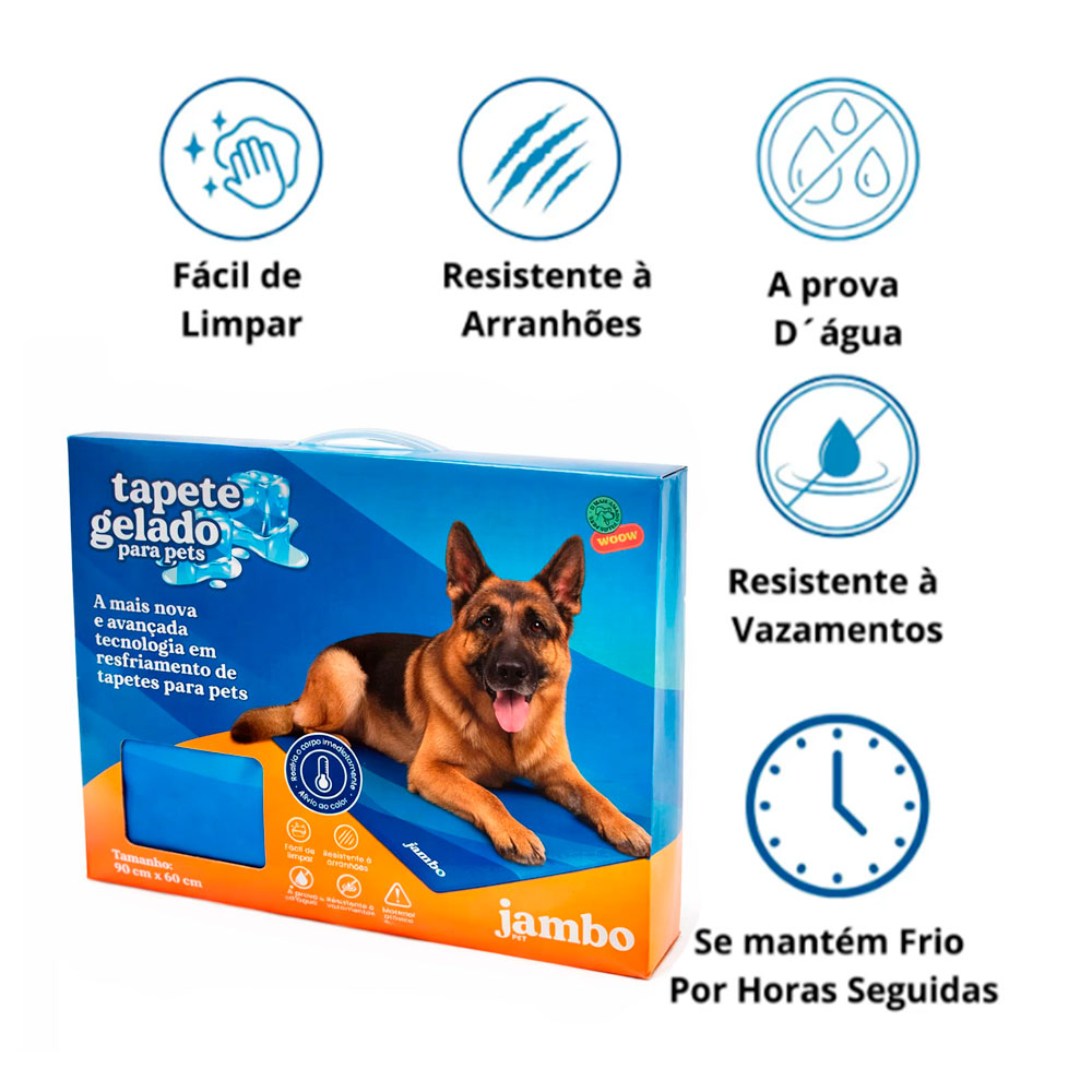 O Tapete Gelado é bem refrescante e confortável, permitindo que o seu cão fique tranquilo durante o dia a dia. Possui um gel interno que é ativado com o peso do cãozinho, ou seja, assim que o pet se deita sobre o tapete gelado, o produto tende a reduzir entre 5 até 10°C em relação à temperatura ambiente.