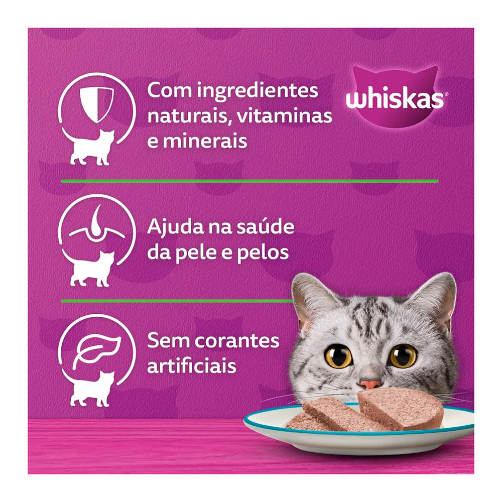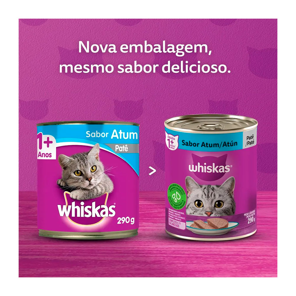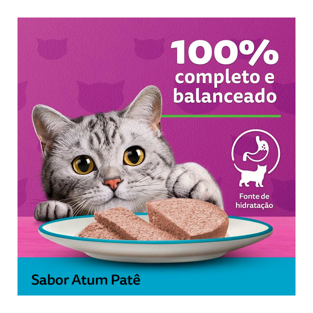 A Ração Úmida Whiskas Patê Atum possui sabor irresistível, mas também uma nutrição equilibrada.