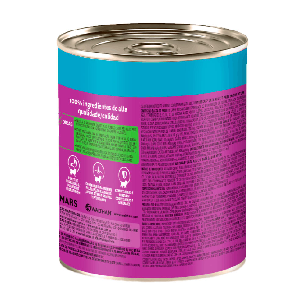 Uma ótima escolha para promover o bem-estar do seu felino. Whiskas Patê Atum é mais do que uma simples refeição para gatos. Com uma fórmula cuidadosamente elaborada, a ração Whiskas patê atum atende às necessidades nutricionais específicas dos felinos, oferecendo uma alimentação saudável e equilibrada.