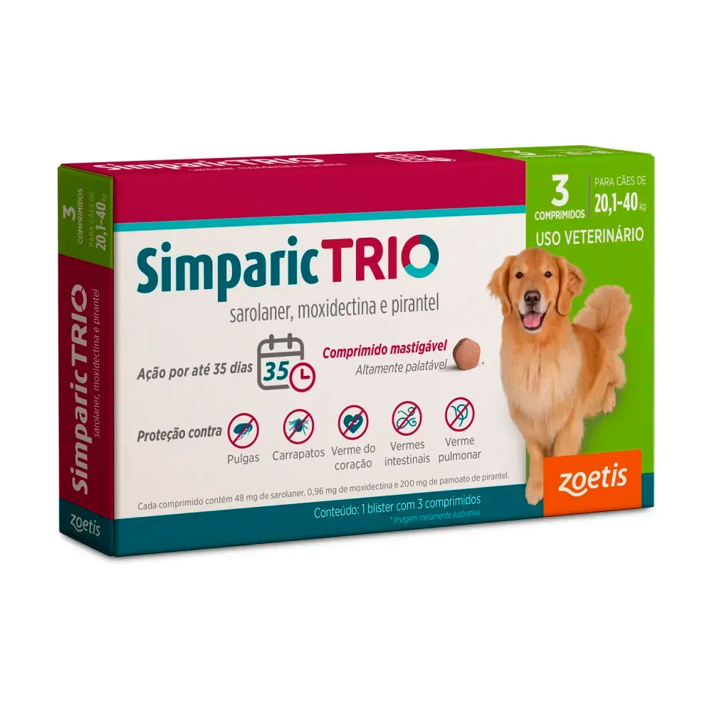 Simparic Trio 48mg Antipulgas e Carrapatos Para Cães 20,1 a 40kg 3 Comprimidos
