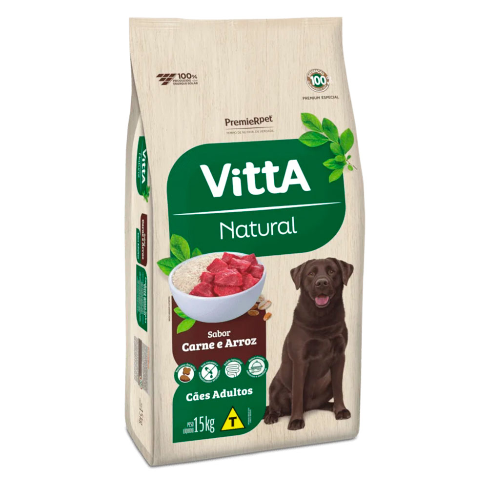 Ração Premier Vitta Natural Para Cães Adultos Sabor Carne e Arroz 15kg