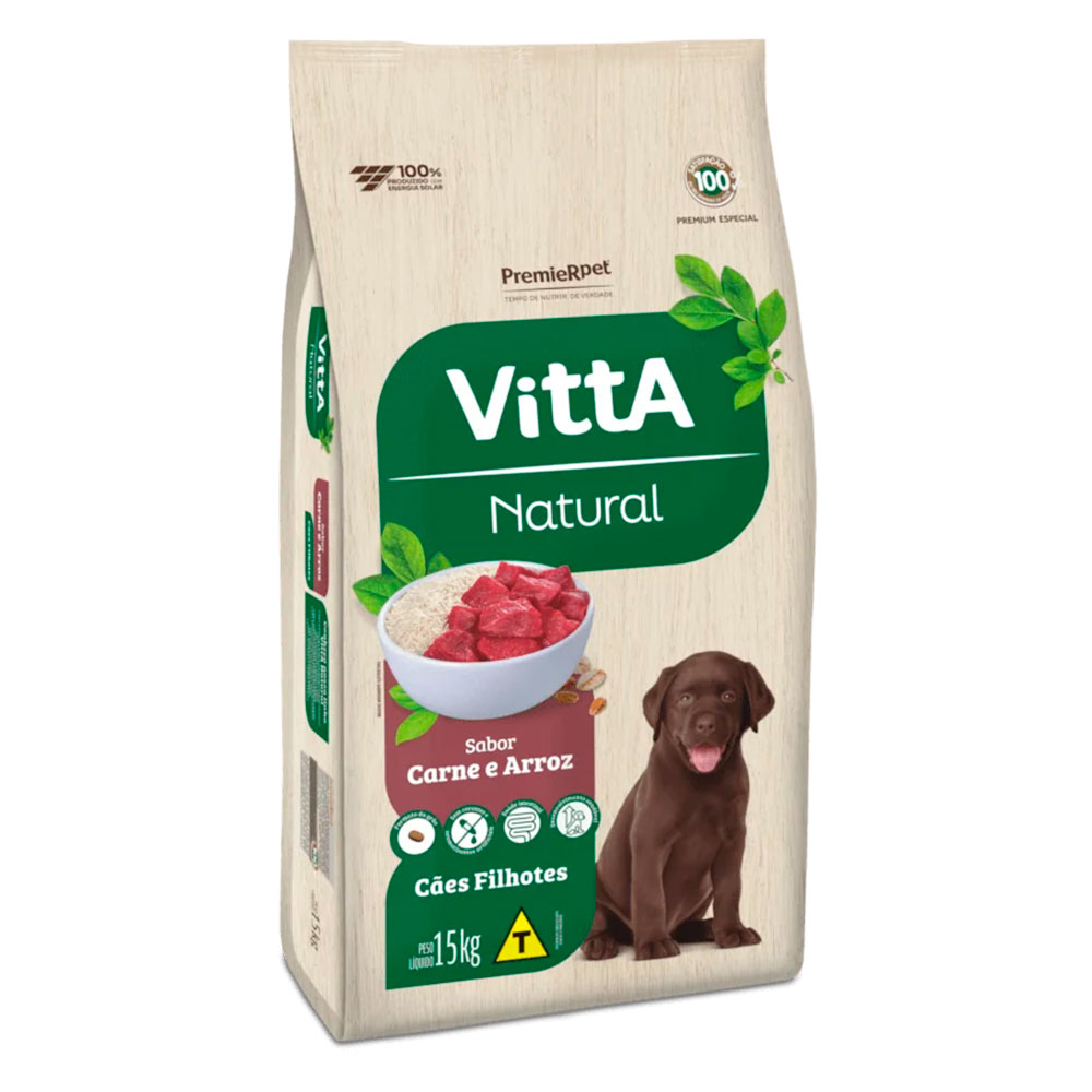 Ração Premier Vitta Natural Para Cães Filhotes Sabor Carne e Arroz 15kg