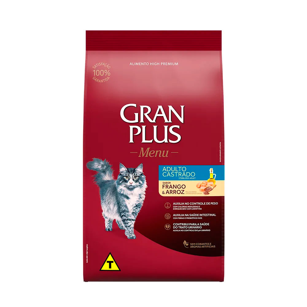 Ração Granplus Menu Gatos Adultos Castrados Frango e Arroz 10,1kg